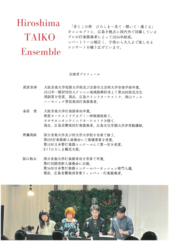 ホーム > ひろしまオペラ・音楽推進委員会 > 現代音楽・クラシック > おすすめ事業 > Hiroshima TAIKO Ensemble
