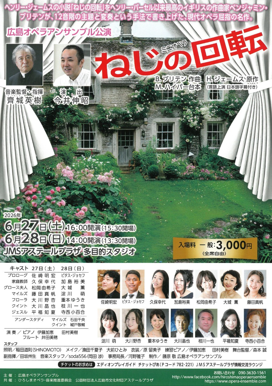 ホーム > ひろしまオペラ・音楽推進委員会 > ひろしまオペラルネッサンス > おすすめ事業 > 広島オペラアンサンブル公演 ミニオペラ「ねじの回転」
