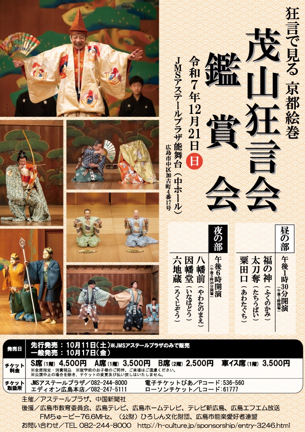 後援:広島市教育委員会、広島テレビ、広島ホームテレビ、テレビ新広島、広島エフエム放送、FMちゅーピー76.6MHz、(公財)ひろしん文化財団、広島市能楽愛好者連盟