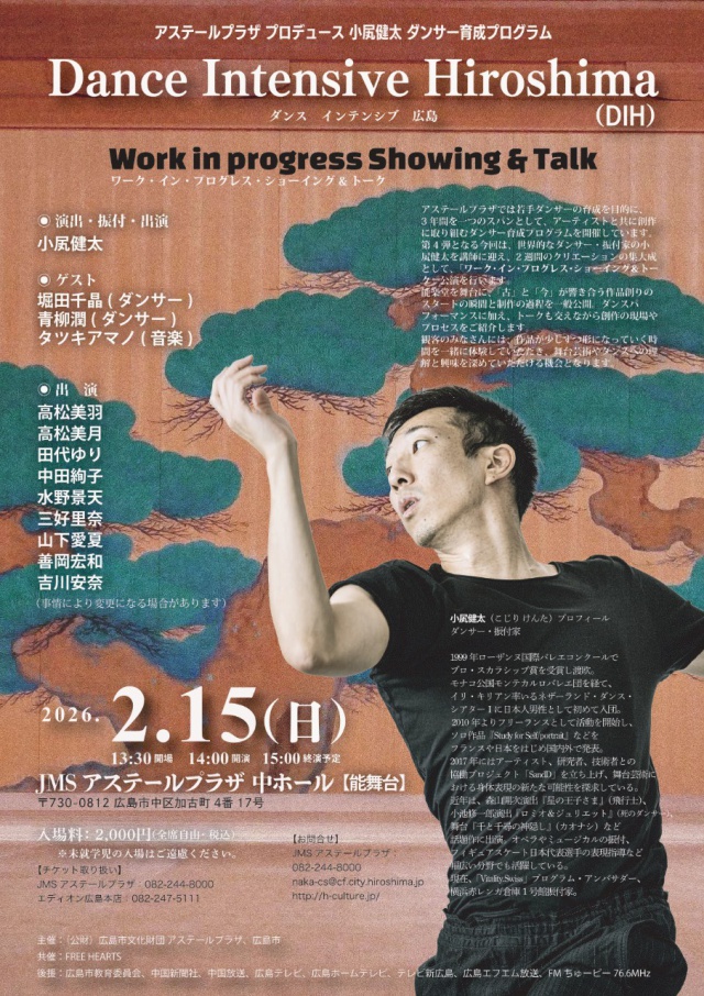 ホーム > 主催事業 > アステールプラザプロデュース小㞍健太ダンサー育成プログラム「Dance Intensive Hiroshima」(DIH)