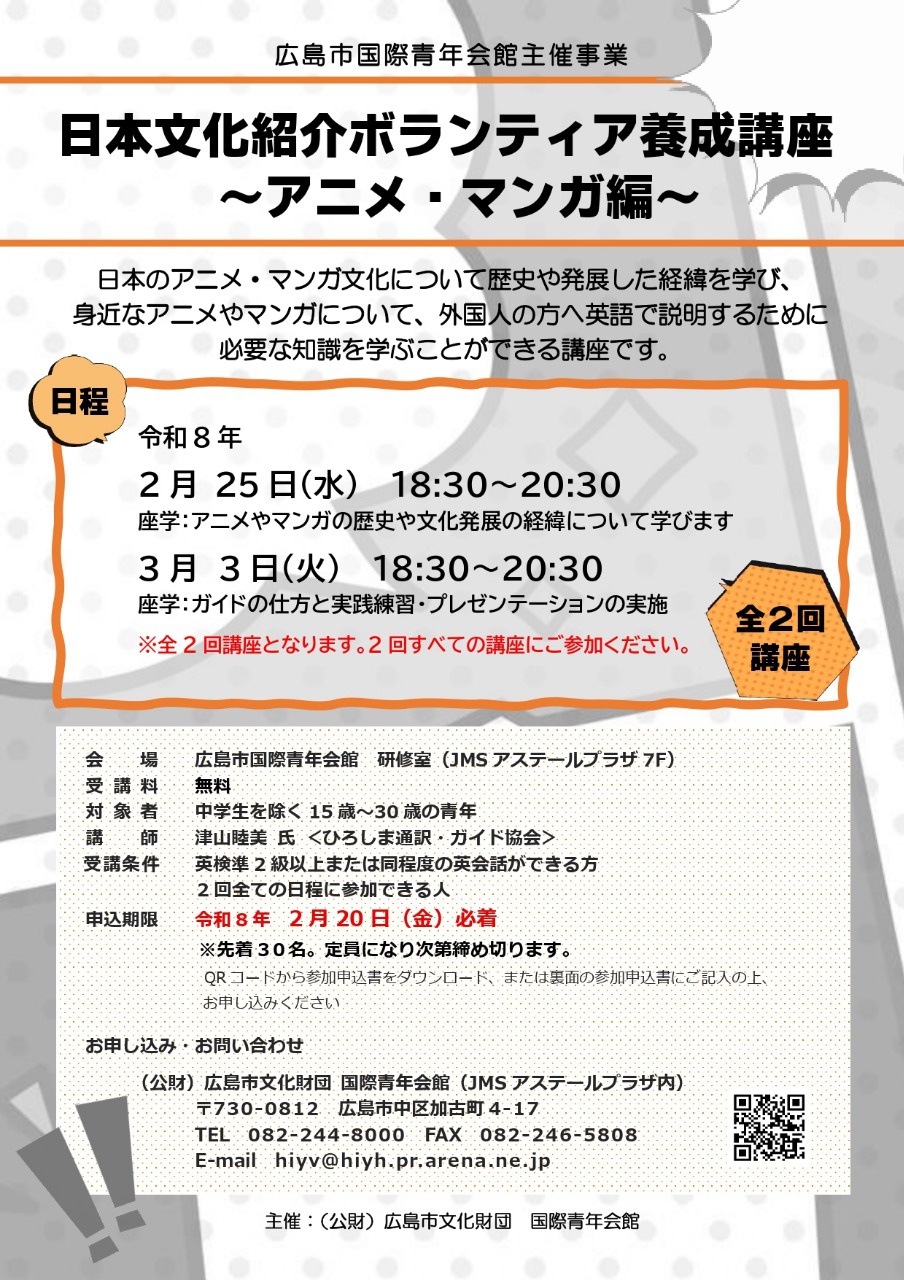 日本文化紹介ボランティア養成講座~アニメ・マンガ編~ 受講生募集